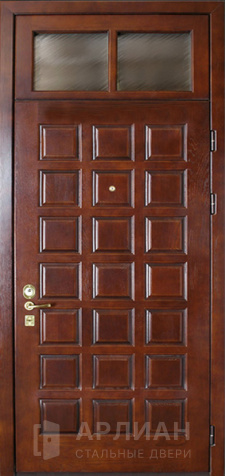 Металлическая входная дверь в коттедж с верхней фрамугой №10
